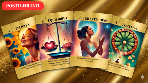 Le Carte dell’Anima non sono semplici carte, ma vere e proprie chiavi di accesso al tuo mondo interiore. Ogni carta porta con sé un simbolo, un messaggio e un’energia capace di risuonare profondamente dentro di te, offrendo nuove prospettive, illuminazioni e intuizioni preziose. Sono uno strumento che ti guida a: 🌿 Connetterti con le tue emozioni più autentiche 🌿 Portare chiarezza nei momenti di dubbio o cambiamento 🌿 Attivare nuove consapevolezze per la tua crescita personale 🌿 Sviluppare la tua sensibilità e capacità intuitiva Le Carte dell’Anima, diventano anche un mezzo per offrire letture agli altri, accompagnandoli nei loro percorsi di trasformazione e benessere. Per questo organizzo corsi periodici dedicati alle Carte dell’Anima, pensati per chi desidera approfondire il loro utilizzo, imparare a interpretarle con sicurezza e integrarle come prezioso strumento di crescita personale e di supporto agli altri. Con le Carte dell’Anima potrai aprire la porta a una nuova visione di te stesso e del mondo, trasformando ogni lettura in un momento di rivelazione e di connessione profonda.